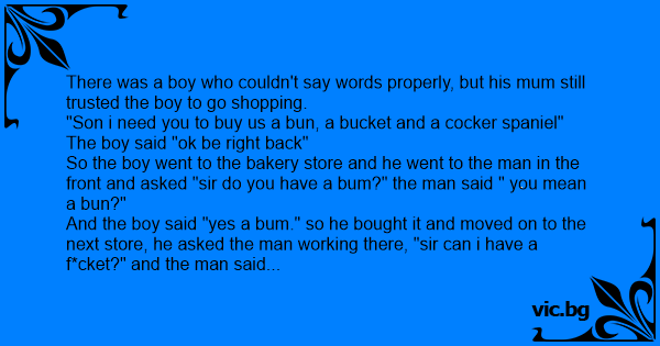 And the boy said "yes a вuм." so he bought it and moved on to the next store, he asked the man working there, "sir can i have a f*cket?" and the man said "ohh~~ do you mean a 'bucket'?" and so the boy doesn't bother and says "yes, a f*cket..."