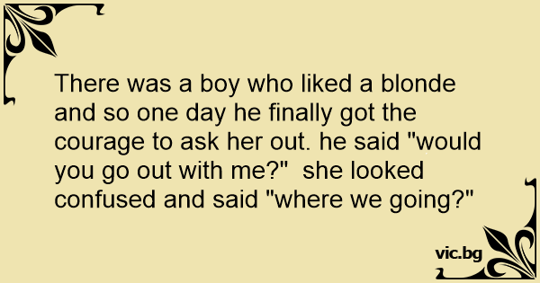 There was a boy who liked a blonde and so one day he finally got the courage to ask her out. he said "would you go out with me?" she looked confused and said "where we going?"