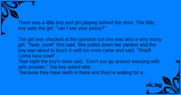 There was a little boy and girl playing behind the shed. The little boy asks the girl, “can I see your рussy?” …