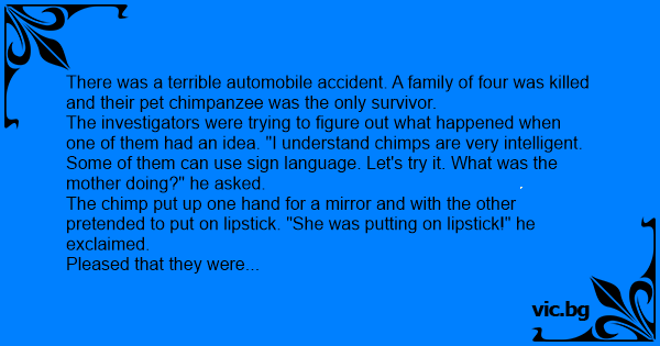 There was a terrible automobile accident. A family of four was killed and their pet chimpanzee was the only survivor.