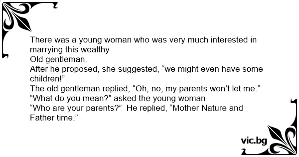 The old gentleman replied, “Oh, no, my parents won’t let me.”