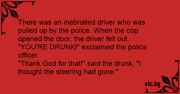 "Thank God for that!" said the drunк, "I thought the steering had gone."