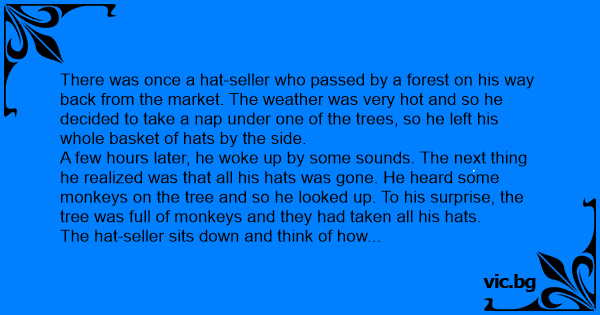 There was once a hat-seller who passed by a forest on his way back from the market. The weather was very hot and so he decided to take a nap under one of the trees, so he left his whole basket of hats by the side.