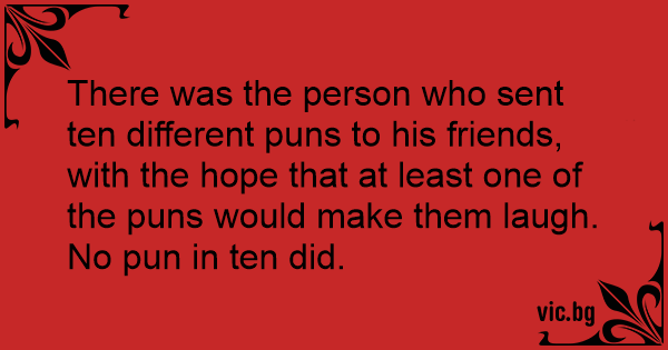 There was the person who sent ten different puns to his friends, with the hope that at least one of the puns would make them laugh. No pun in ten did.