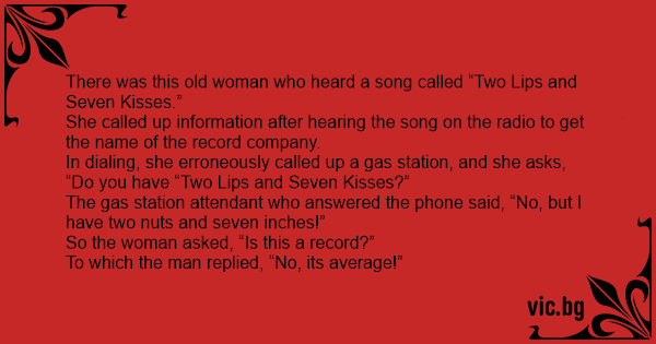There was this old woman who heard a song called “Two Lips and Seven Kisses.”