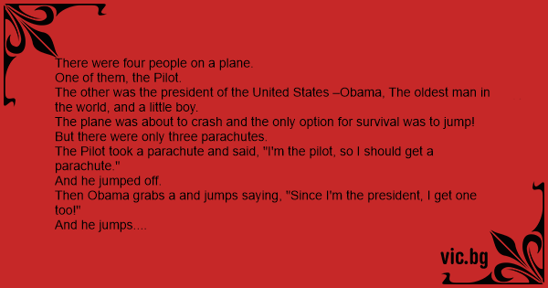 The Pilot took a parachute and said, "I'm the pilot, so I should get a parachute."