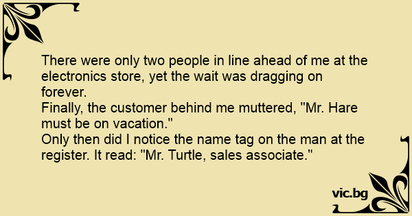 There were only two people in line ahead of me at the electronics store, yet the wait was dragging on forever.
