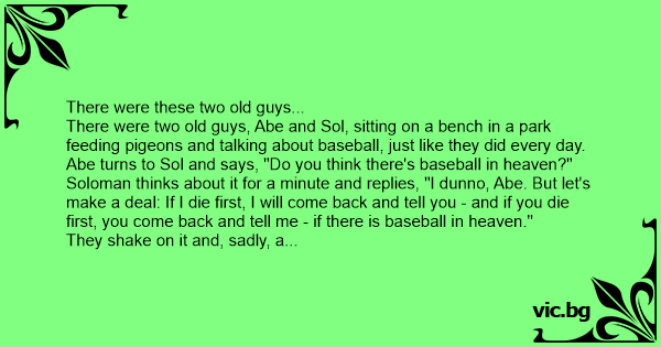 Abe turns to Sol and says, "Do you think there's baseball in heaven?"