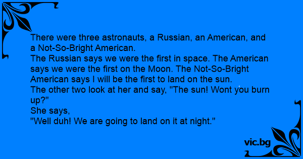 There were three astronauts, a Russian, an American, and a Not-So-Bright American.