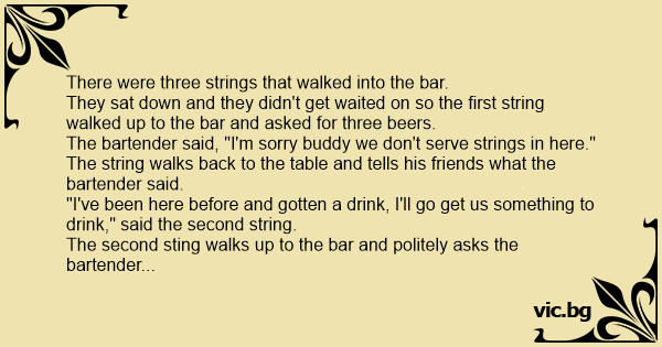 The bartender said, "I'm sorry buddy we don't serve strings in here."