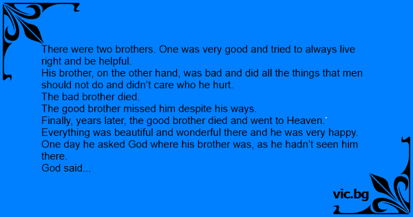 Confused, the good brother said to God, "I am so happy that you let me into Heaven with You. It is so beautiful here and I love it. But I don’t understand, if my brother was bad enough to go to Неll, why does he have the keg of вееr and a gorgeous blonde? It hardly seems like a punishment."