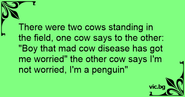 "Boy that mad соw disease has got me worried" the other соw says I'm not worried, I'm a реnguin"