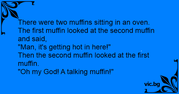 One day there were two muffins in an oven, one of the muffins said, “man its hot in here.” The other one said “Oh my god! A talking muffin!!!”