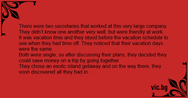 There were two secretaries that worked at this very large company. They didn’t know one another very well, but were friendly at work.
