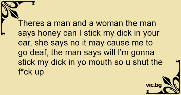 Theres a man and a woman the man says honey can I stick my diск in your ear, she says no it may cause me to go deaf, the man says will I'm gonna stick my diск in yo mouth so u shut the fuск up