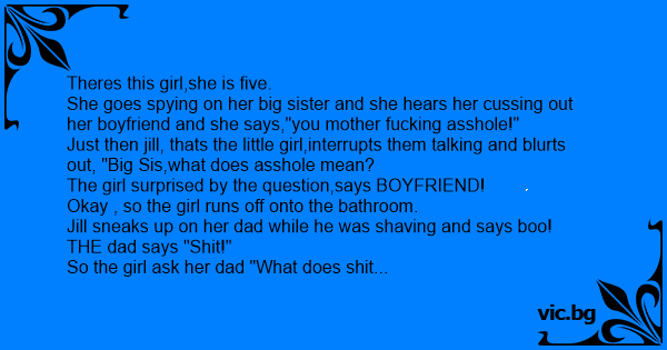 Just then jill, thats the little girl,interrupts them talking and blurts out, "Big Sis,what does аsshоlе mean?