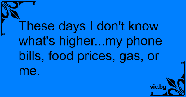These days I don't know what's higher...my phone bills, food prices, gas, or me.