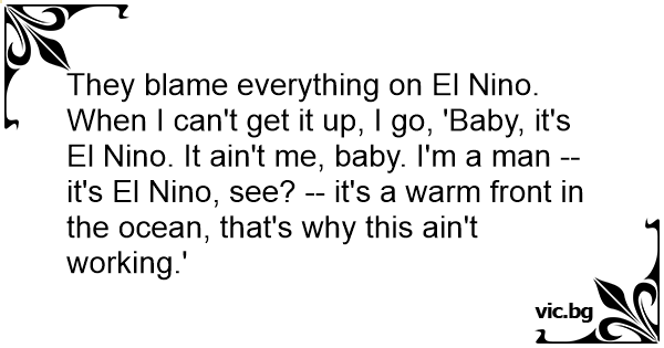 They blame everything on El Nino. When I can't get it up, I go, 'Baby, it's El Nino. It ain't me, baby. I'm a man -- it's El Nino, see? -- it's a warm front in the ocean, that's why this ain't working.'