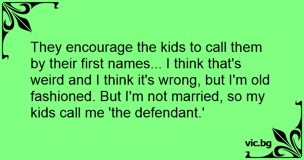 They encourage the kids to call them by their first names... I think that's weird and I think it's wrong, but I'm old fashioned. But I'm not married, so my kids call me 'the defendant.'