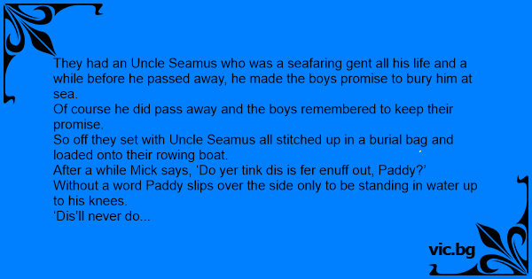 They had an Uncle Seamus who was a seafaring gent all his life and a while before he passed away, he made the boys promise to bury him at sea.