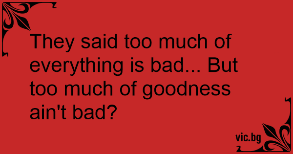 They said too much of everything is bad... But too much of goodness ain't bad?