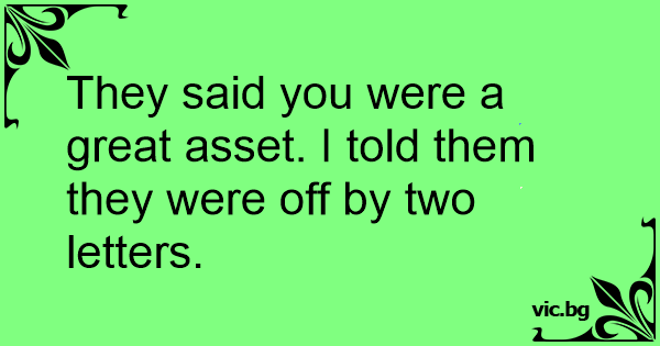 They said you were a great asset. I told them they were off by two letters.