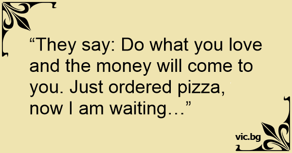 “They say: Do what you love and the money will come to you. Just ordered pizza, now I am waiting…”