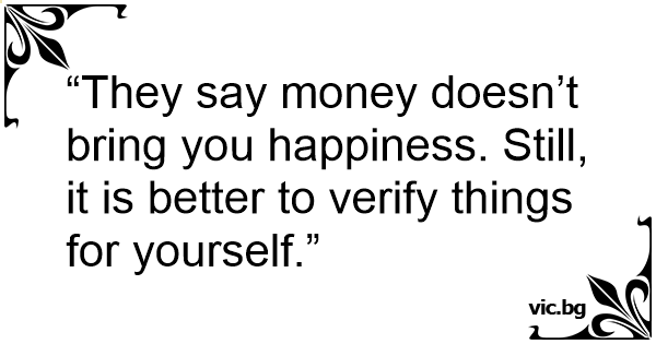 “They say money doesn’t bring you happiness. Still, it is better to verify things for yourself.”