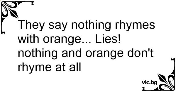 They say nothing rhymes with orange... Lies! nothing and orange don't rhyme at all