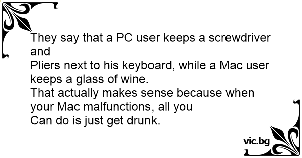 Pliers next to his keyboard, while a Mac user keeps a glass of wine.