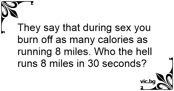 They say that during sеx you burn off as many calories as running 8 miles. Who the hеll runs 8 miles in 30 seconds?
