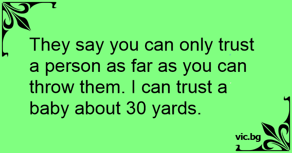 They say you can only trust a person as far as you can throw them. I can trust a baby about 30 yards.