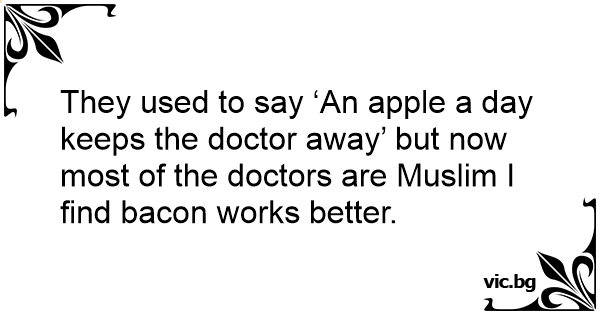 They used to say ‘An apple a day keeps the doctor away’ but now most of the doctors are Muslim I find bacon works better.