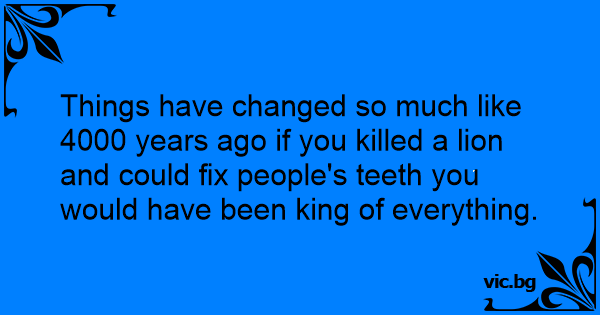 Things have changed so much like 4000 years ago if you killed a lion and could fix people's teeth you would have been king of everything.