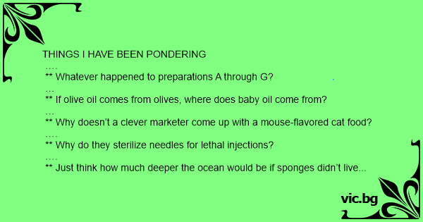 THINGS I HAVE BEEN PONDERING