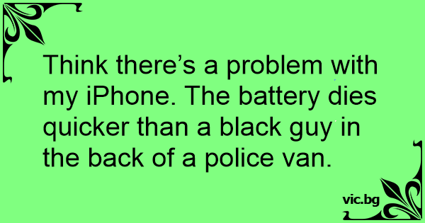 Think there’s a problem with my iPhone. The battery dies quicker than a black guy in the back of a police van.