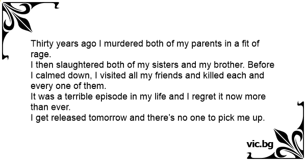 Thirty years ago I murdered both of my parents in a fit of rage.