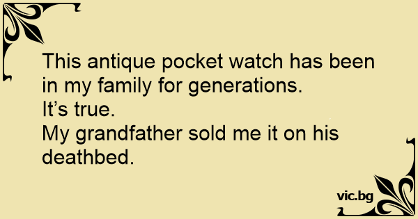 This antique pocket watch has been in my family for generations. It’s true. My grandfather sold me it on his deathbed.