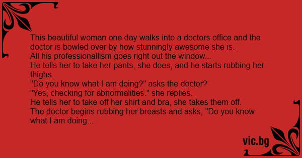 Μία πολύ όμορφη και αισθησιακή γυναίκα, επισκέπτεται έναν γυναικολόγο. Αυτός με το που την βλέπει τα χάνει και ο επαγγελματισμός του βγαίνει από το Παράθυρο. Αμέσως της λέει να γδυθεί και αρχίζει...