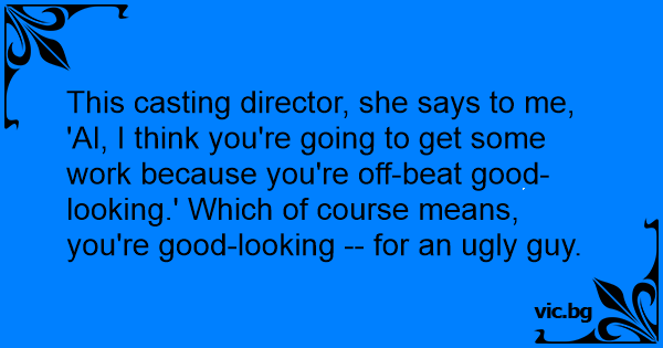 This casting director, she says to me, 'Al, I think you're going to get some work because you're off-beat good-looking.' Which of course means, you're good-looking -- for an ugly guy.