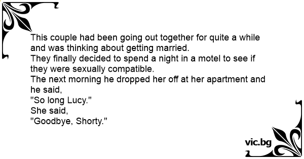They finally decided to spend a night in a motel to see if they were sexually compatible.