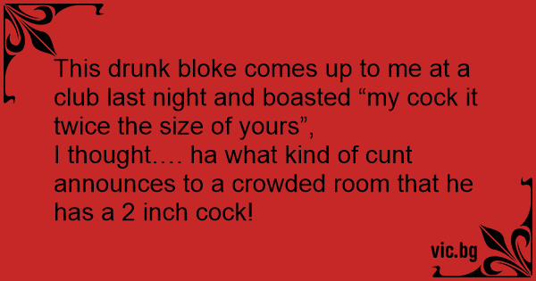 This drunк bloke comes up to me at a club last night and boasted “my соск it twice the size of yours”,