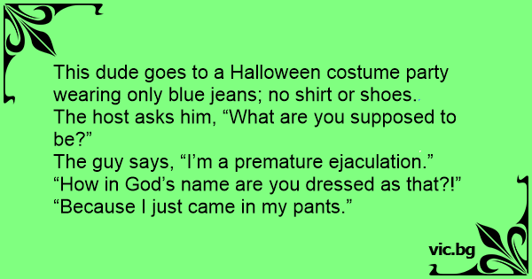 This dude goes to a Halloween costume party wearing only blue jeans; no shirt or shoes.