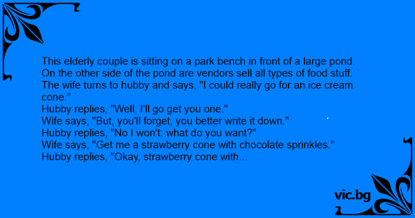 The wife turns to hubby and says, "I could really go for an ice cream cone."
