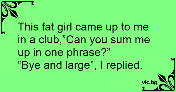 This fат girl came up to me in a club,”Can you sum me up in one phrase?”