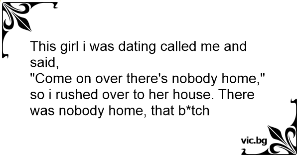 "Come on over there's nobody home," so i rushed over to her house. There was nobody home, that b*tch