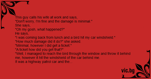 "Well, I managed to reach the bird through the window and throw it behind me, however it hit the windshield of the car behind me.