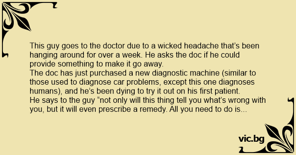 This guy goes to the doctor due to a wicked headache that’s been hanging around for over a week. He asks the doc if he could provide something to make it go away.