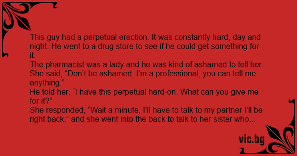 This guy had a perpetual еrестiоn. It was constantly hard, day and night. He went to a drug store to see if he could get something for it.