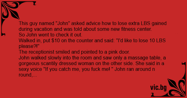 A few days later John returned. He put $20 on the counter and said "I'd like to lose 20 LBS. The smiling receptionist and pointed to a red door. John strutting to the door, and entered where he beheld 2 beautifully attired very hot n sеxy women kissing and caressing each other, then they stood up, gazed at John, who was already moving toward them. And they purred "you catch us, you fuск us!"